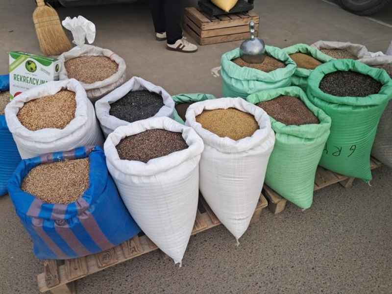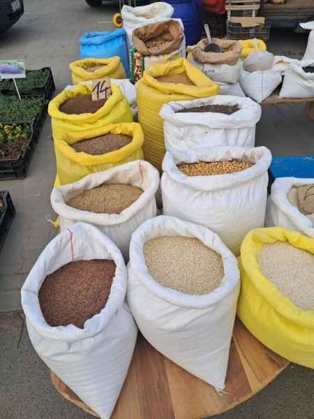 Bogata oferta targu w między innymi wszelkiego rodzaju karmy, pasze dla zwierząt, suchy chleb, wiejskie jajka, oleje, miody, kwiaty, drewno, odzież obuwie oraz owoce przyciągnęła wielu kupujących.